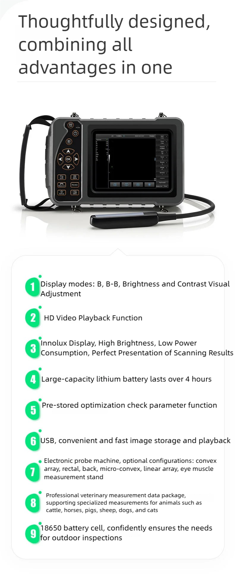For Rectal Convex set, the package including: 1 main unit + 1 rectal probe + 1 convex probe + 1 power adpter + 1 carry case+ 1 portable carrring strap + Lithium battery included + 1 user manual