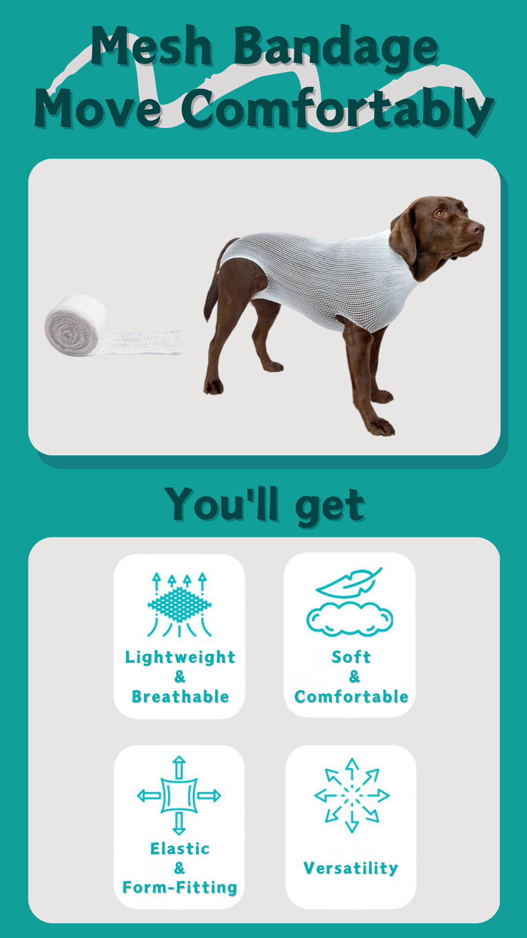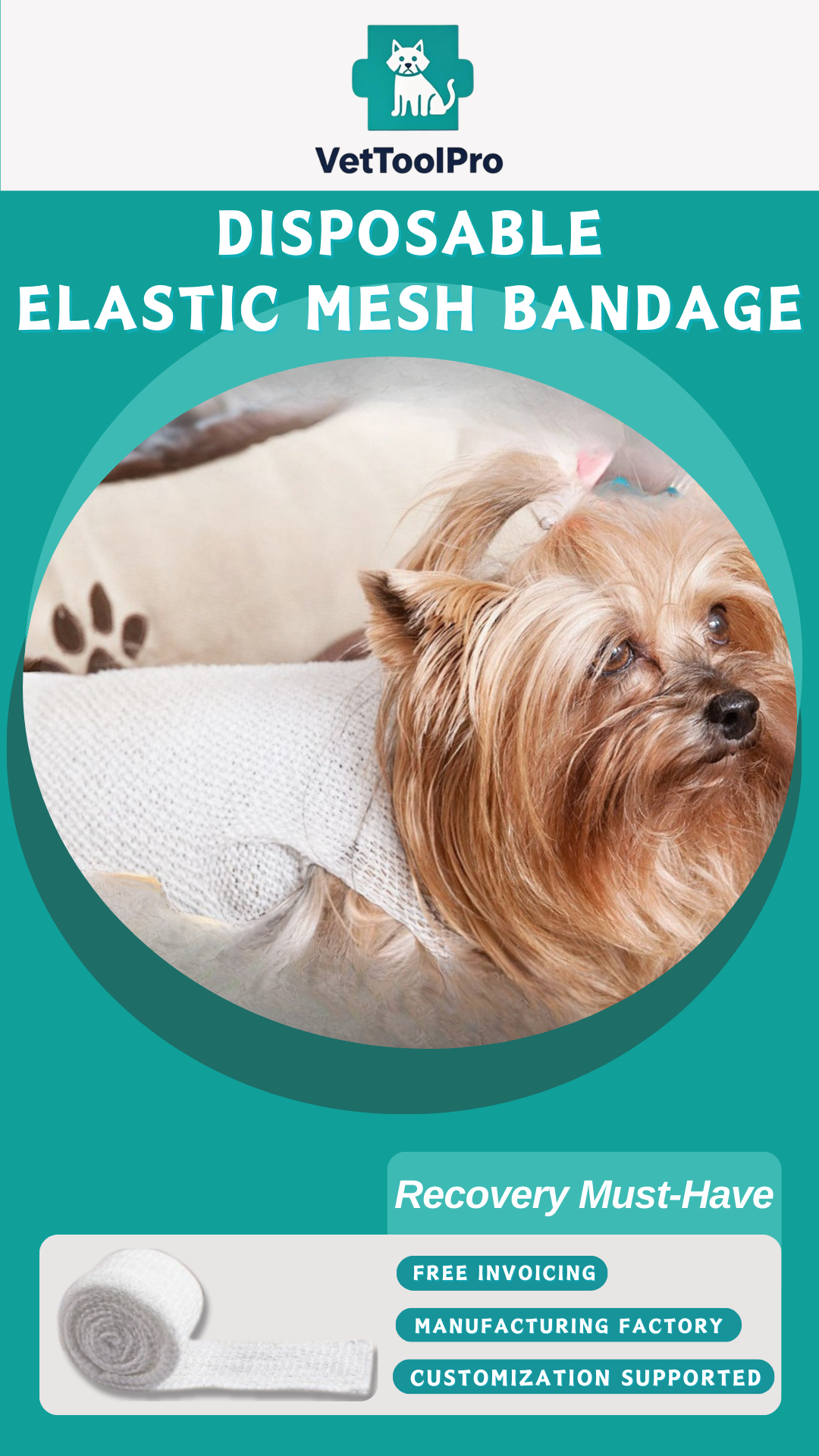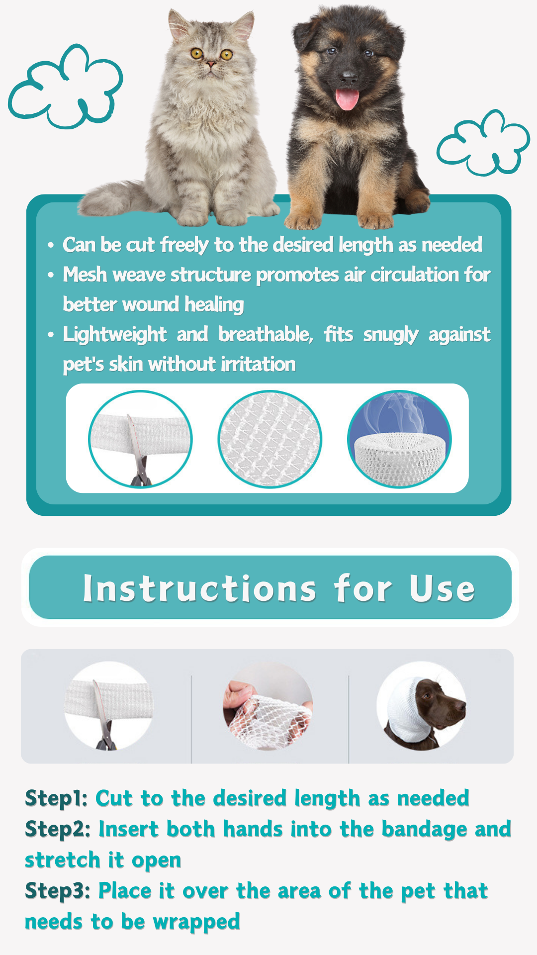 Disposable Elastic Mesh Bandage – Vet Breathable Wrap for Dogs & Cats, Pet Hospital Use,Net Tubular Bandage