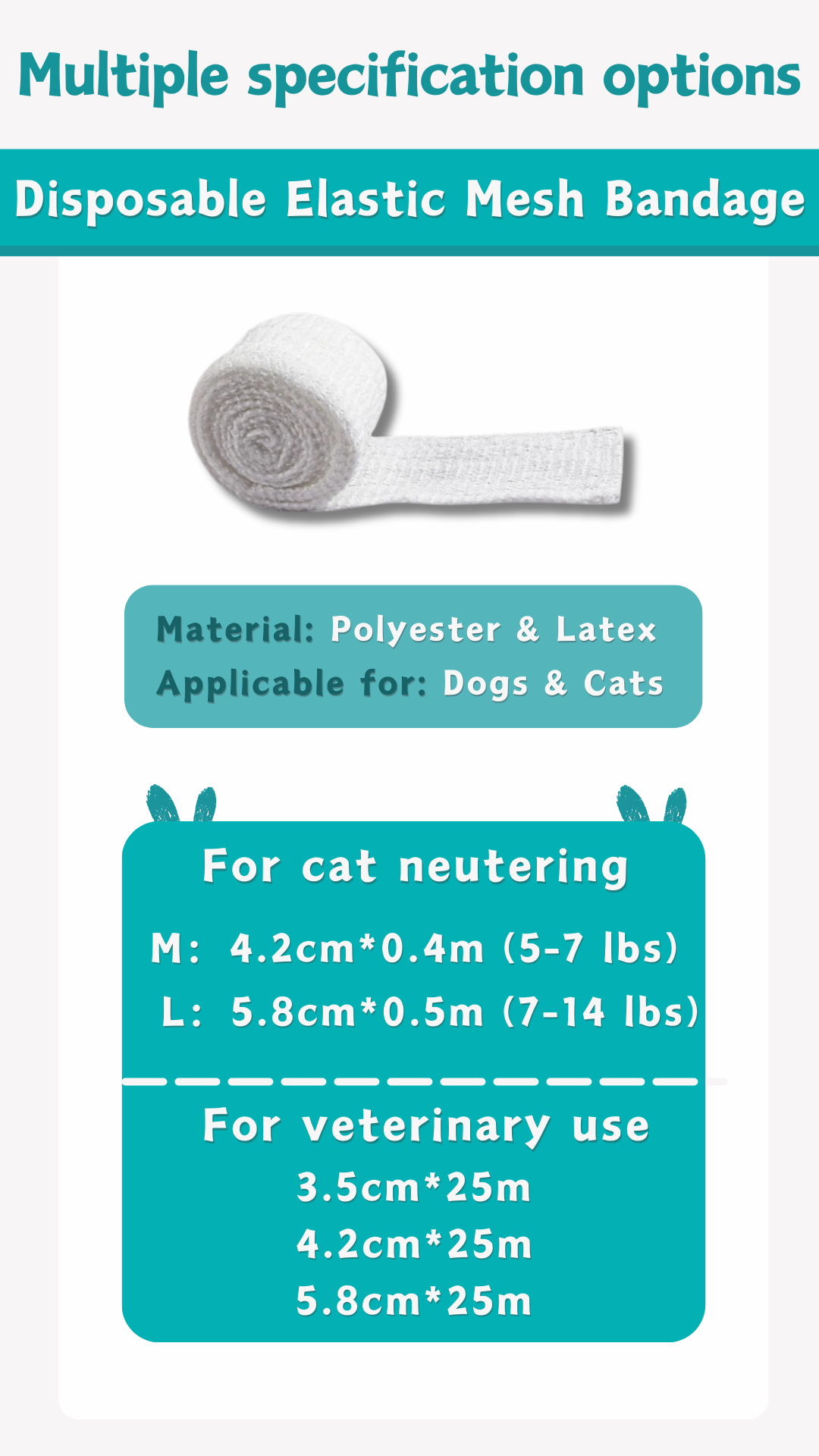 • SKU-Vet 5.8: 5.8cm×25m roll (large animal use)