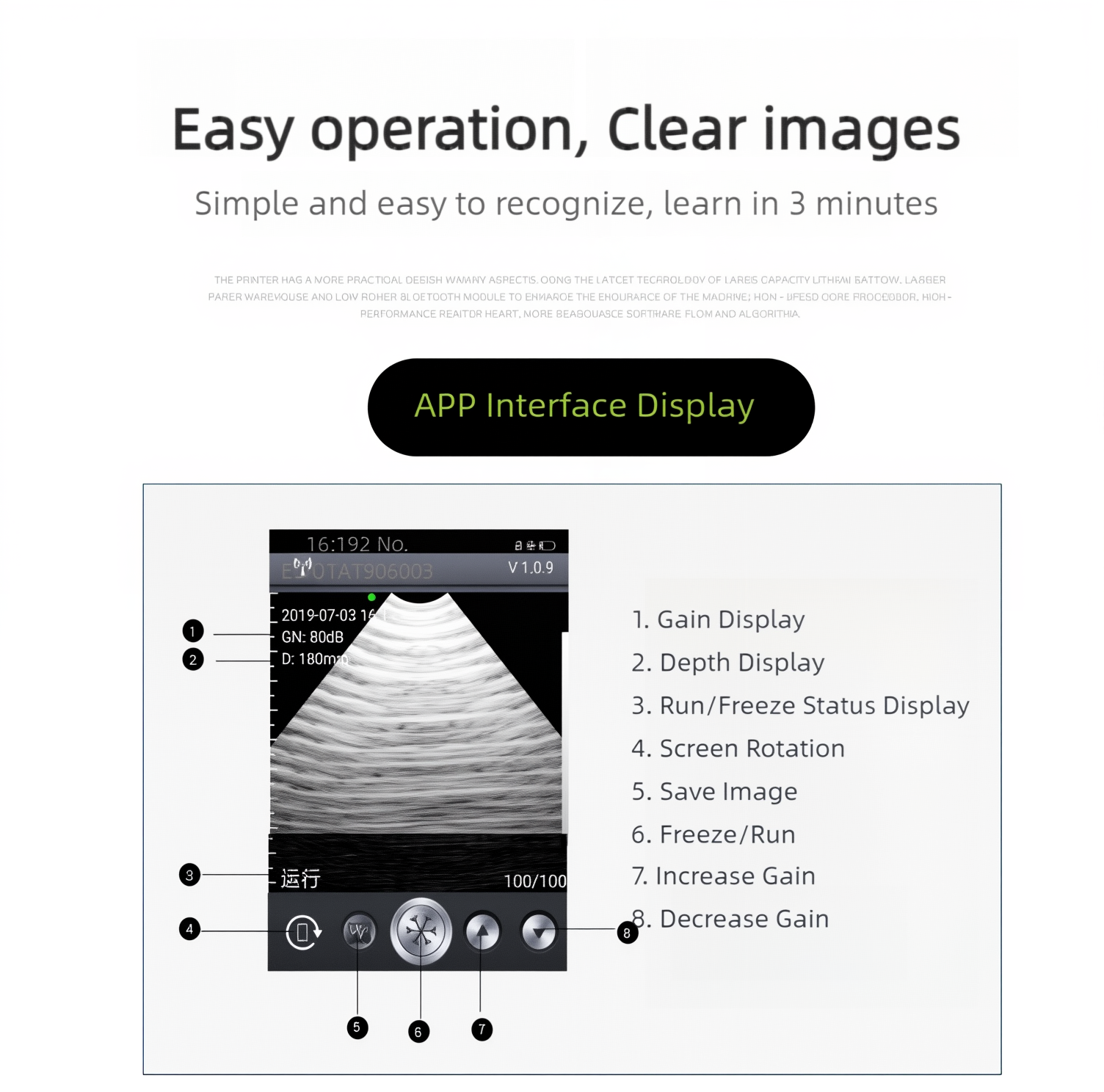 1, Handheld Ultrasound Machine, can connect to phones and tablets, supports real-time diagnosis