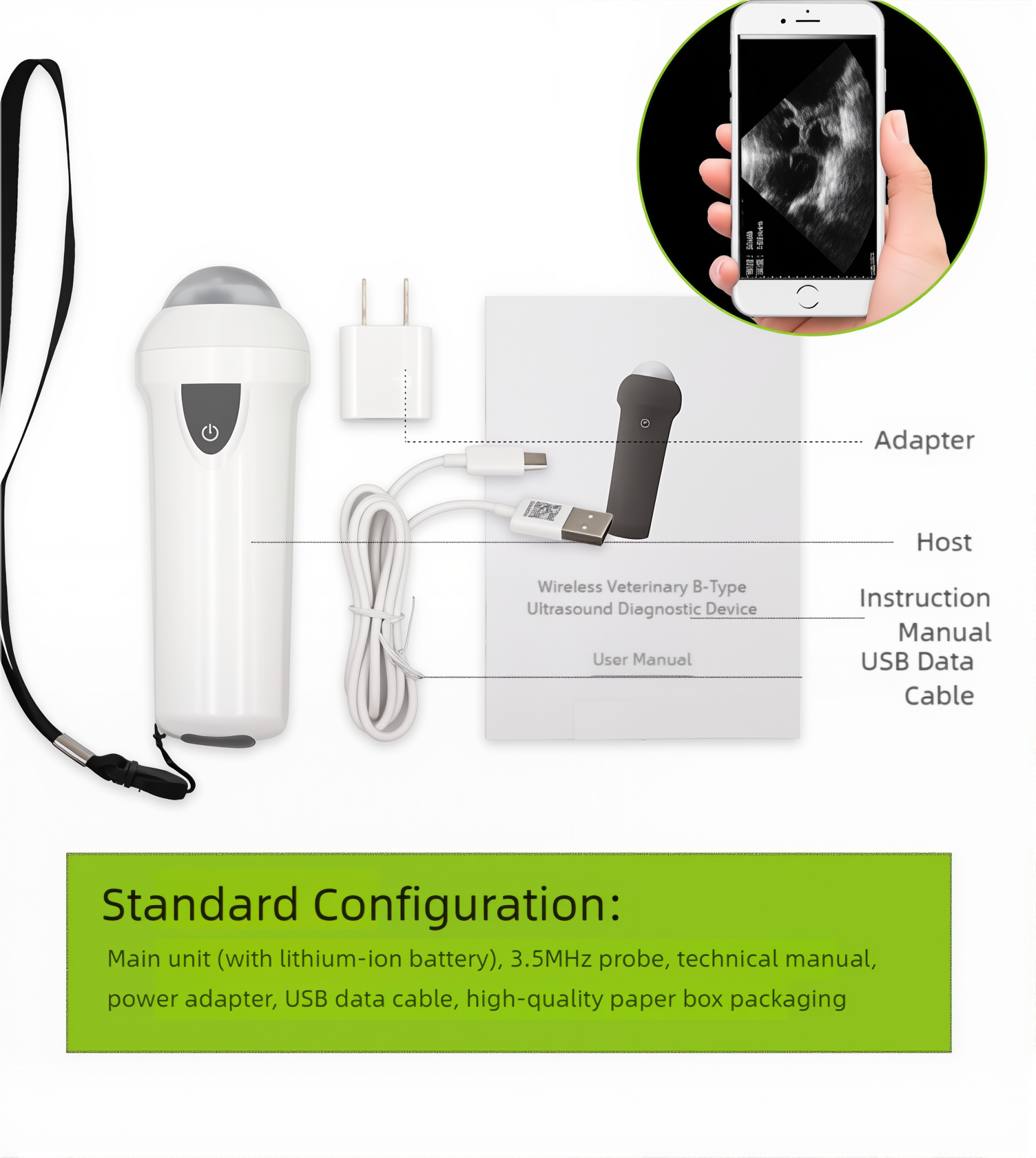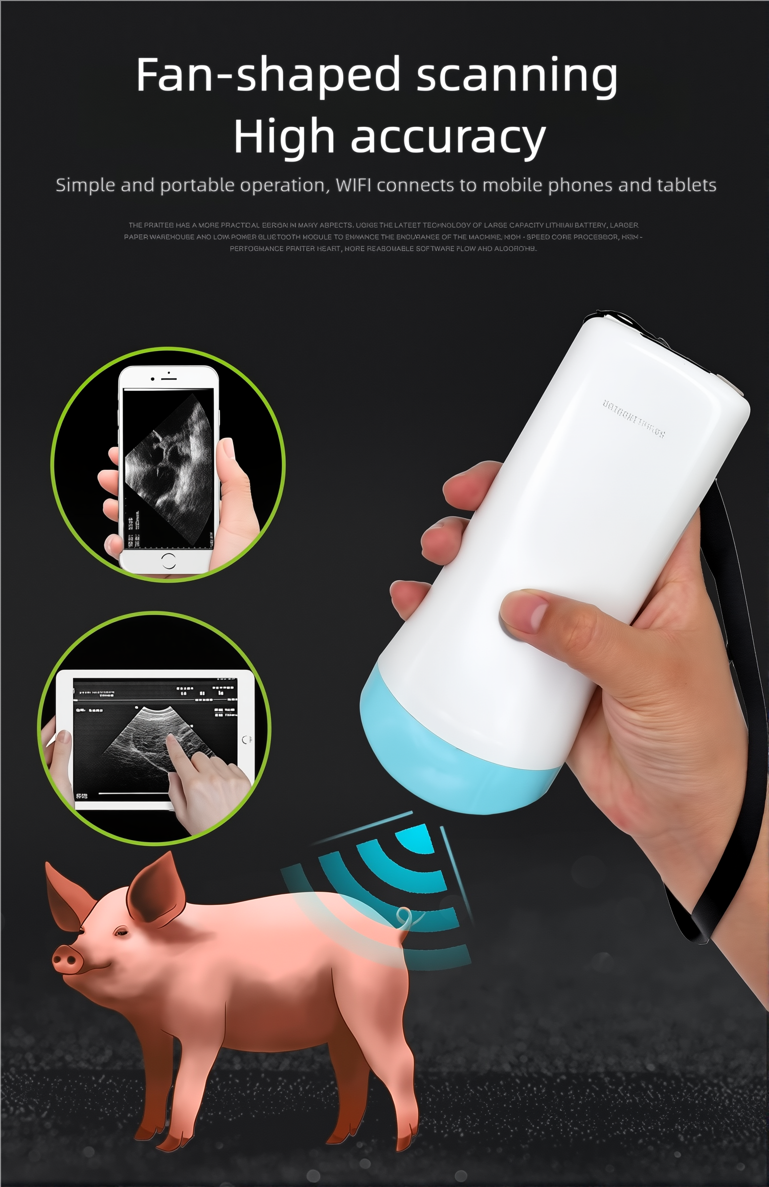 Handheld Wireless Ultrasound Scanner with 3.5 Mhz Probe for Sheep, Dog, Cat, and Pig, Android Portable and Easy-to-Use Veterinary Ultrasound Equipment, Real-time Diagnosis, Includes Battery and Charger