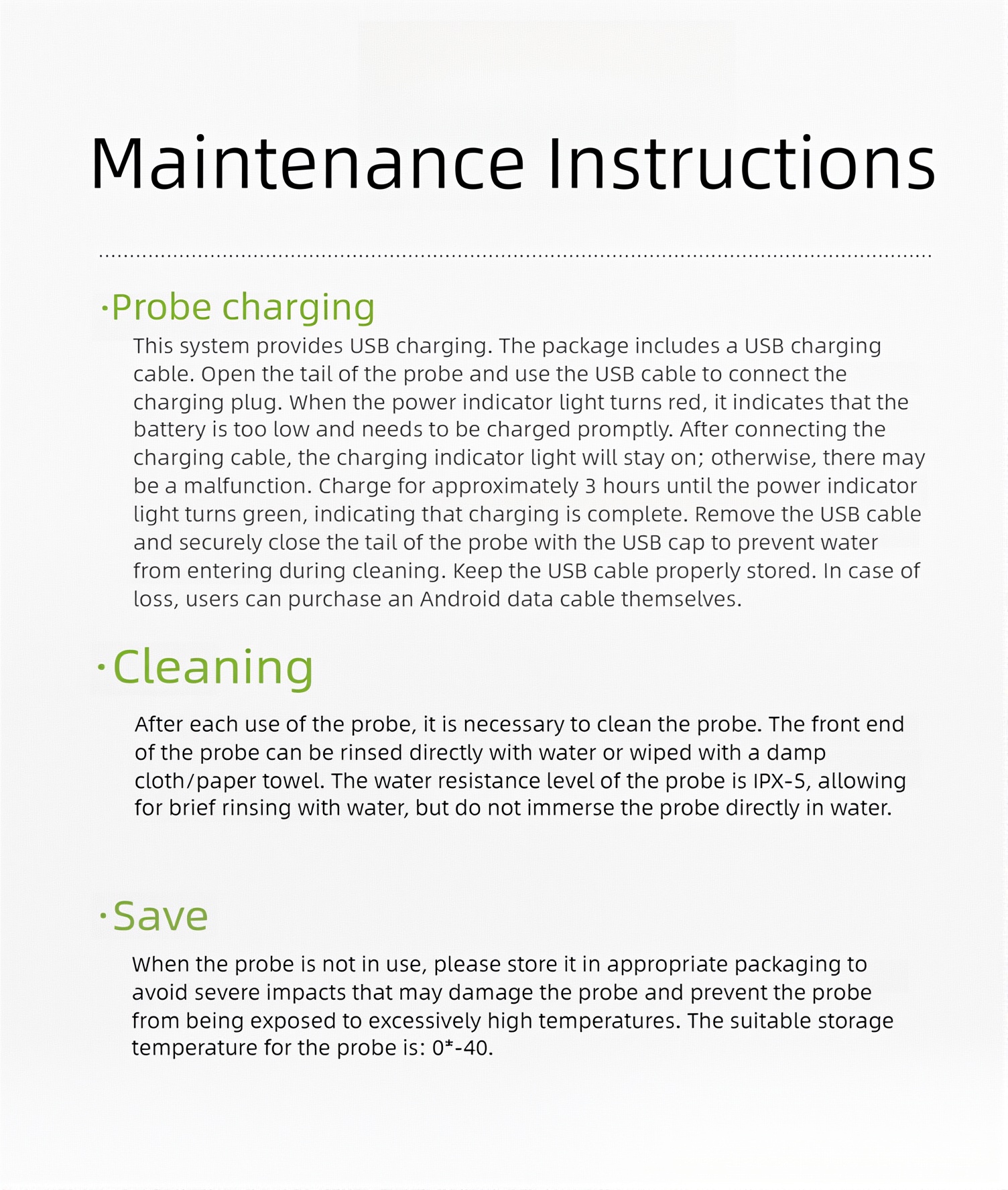 3, Waterproof probe, can be directly washed and disinfected, lightweight and durable body, suitable for emergency and outdoor use scenarios.