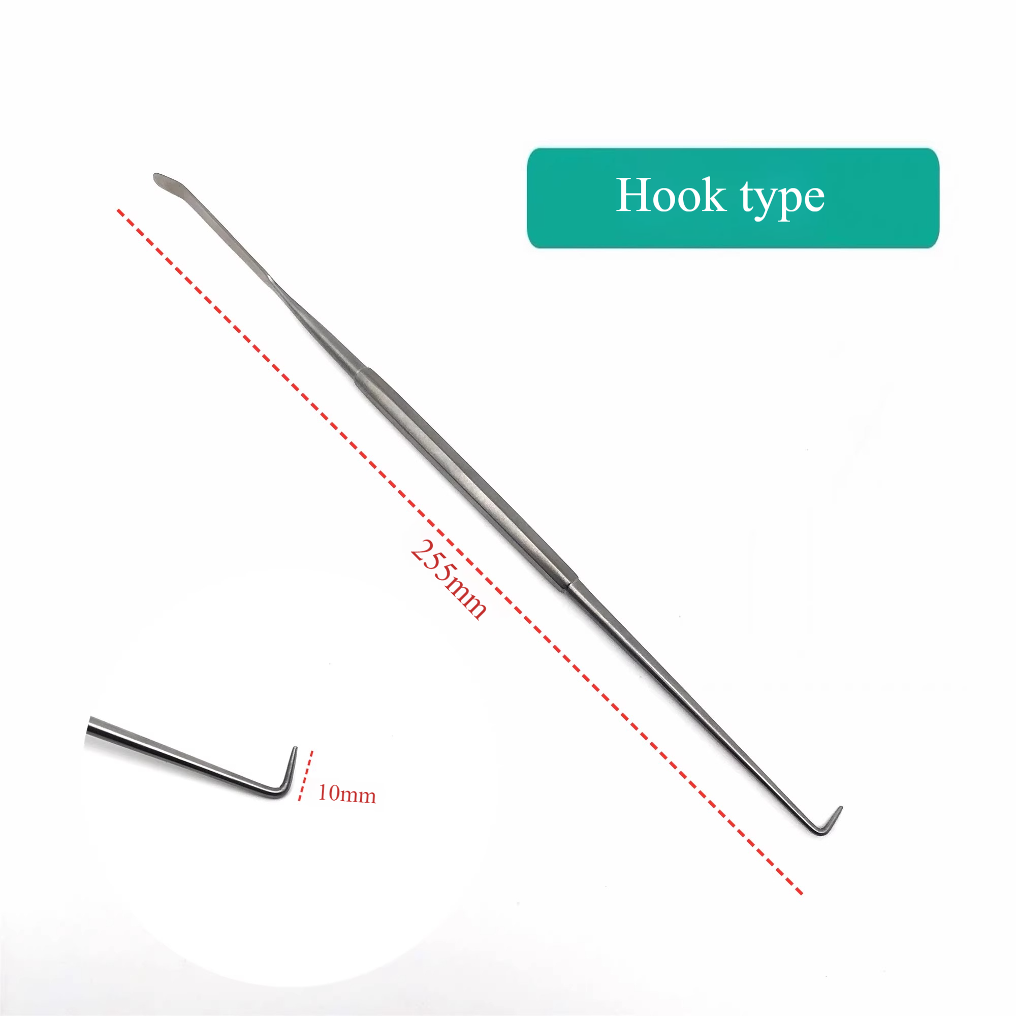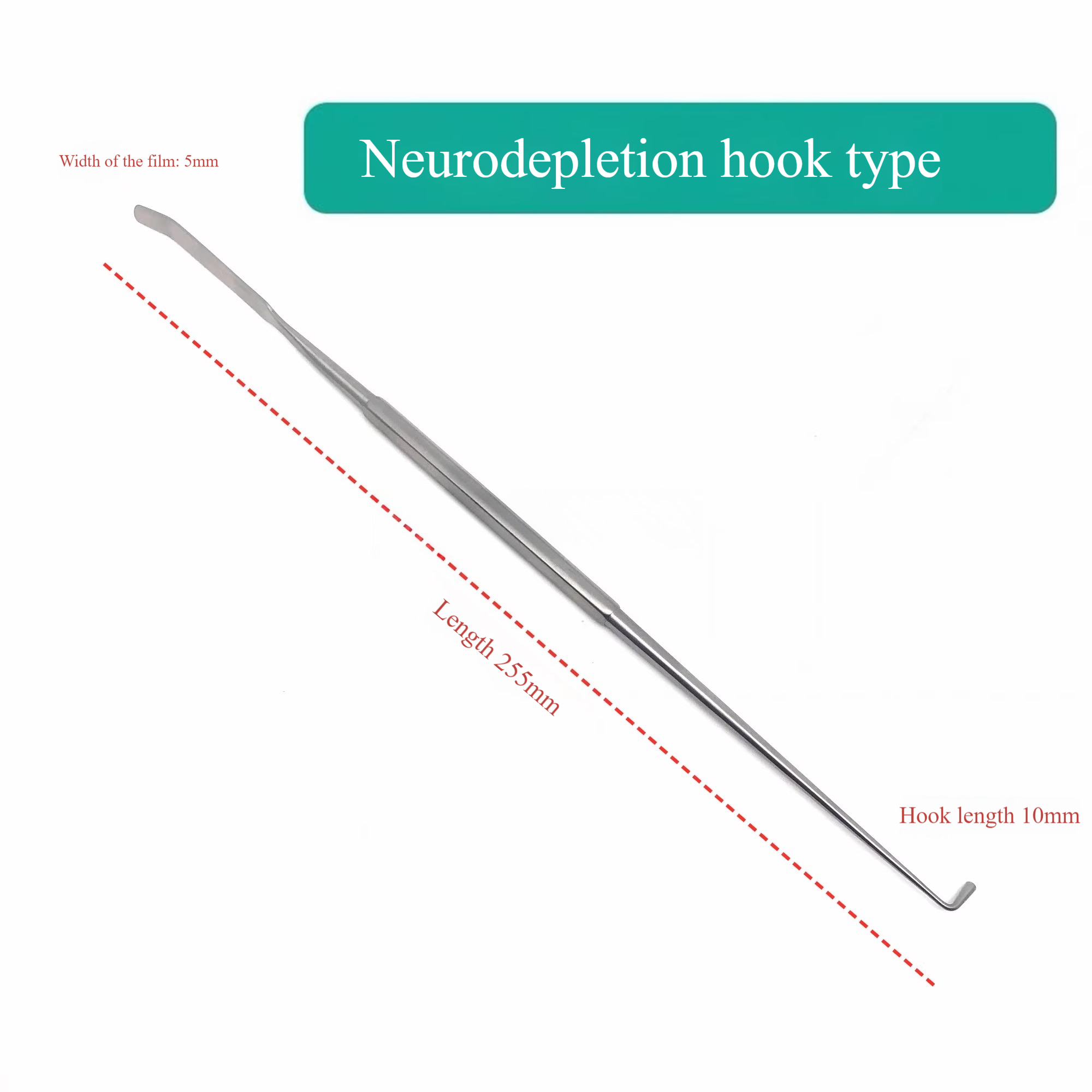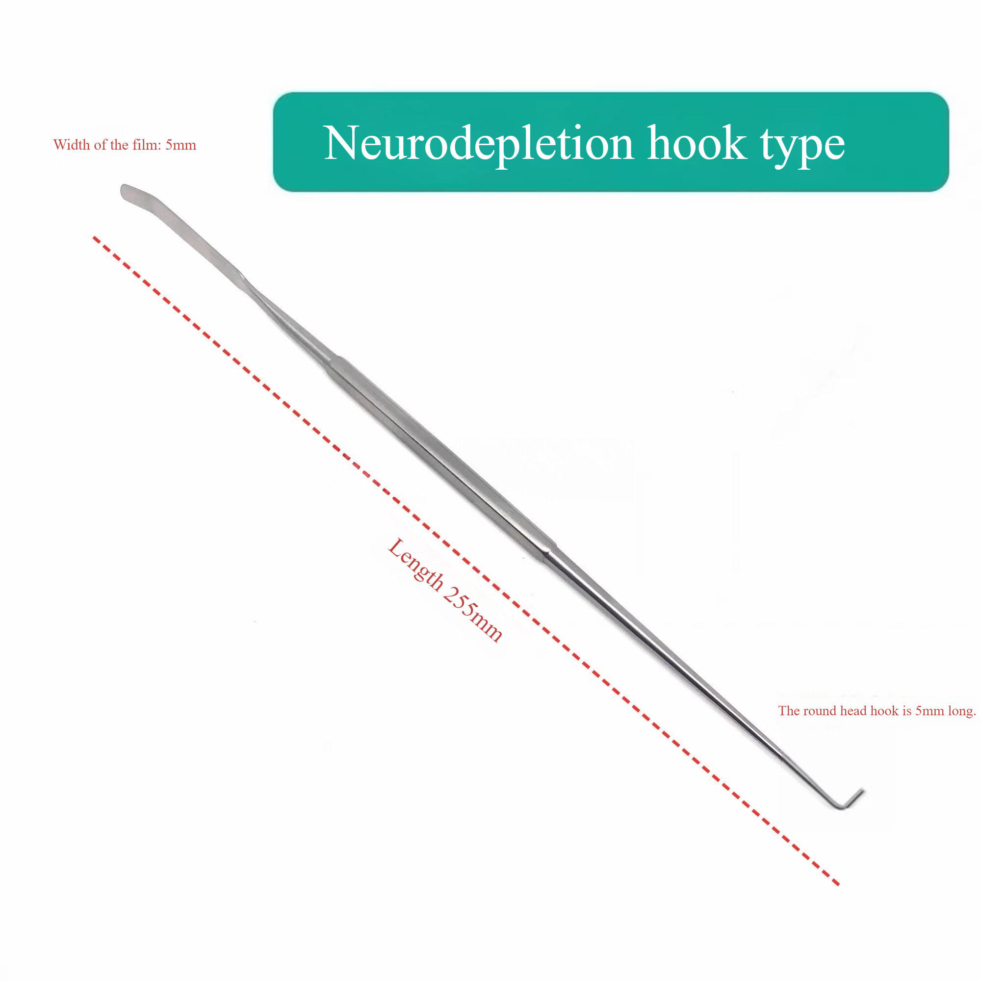Specialized Design: Sub-nerve Type. The tip or structure of this design is specifically engineered to access and operate beneath the nerve for manipulation or retraction, distinguishing it from ordinary retractors or strippers.