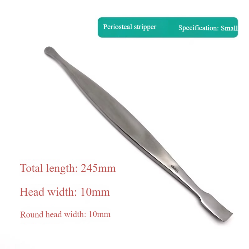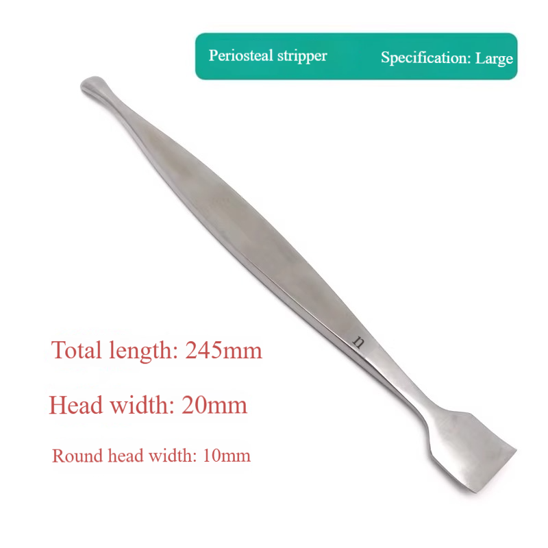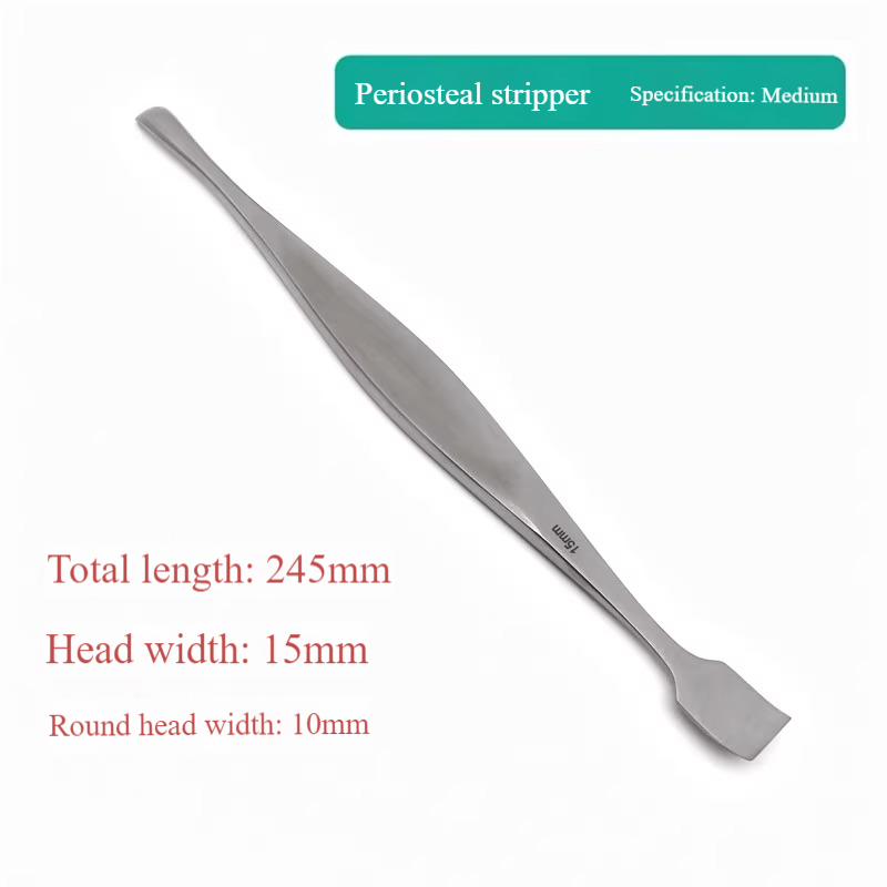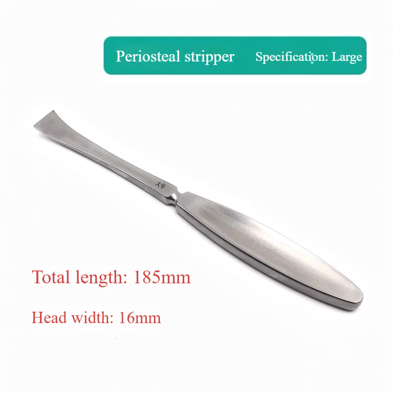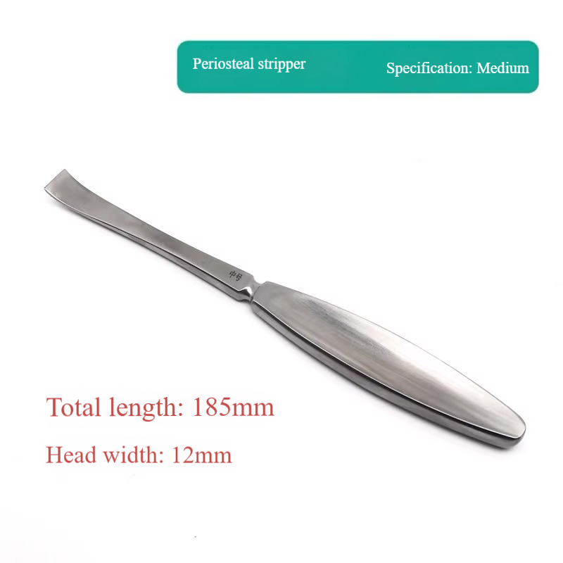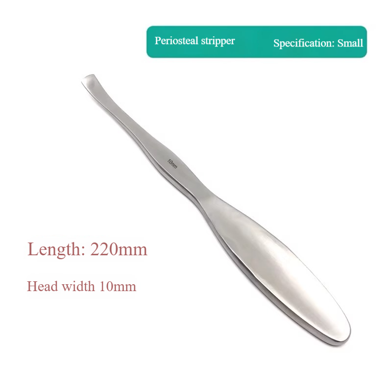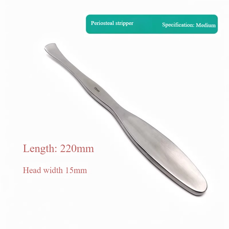 This is a stainless steel periosteal elevator specifically designed for orthopedic surgery. Made from medical-grade stainless steel, it offers excellent corrosion resistance and durability, complies with medical device standards, and is a professional, safe, and reliable surgical instrument.