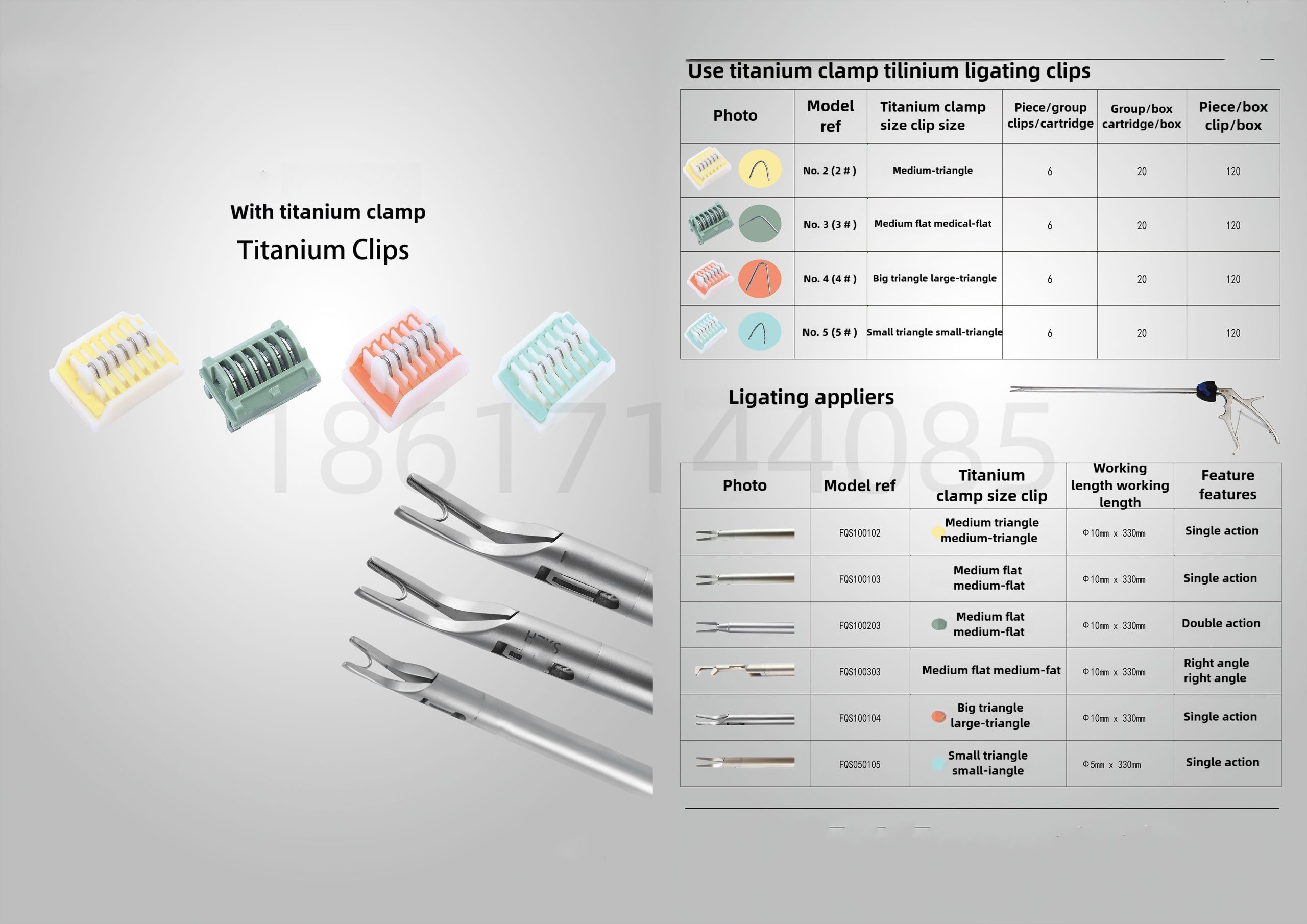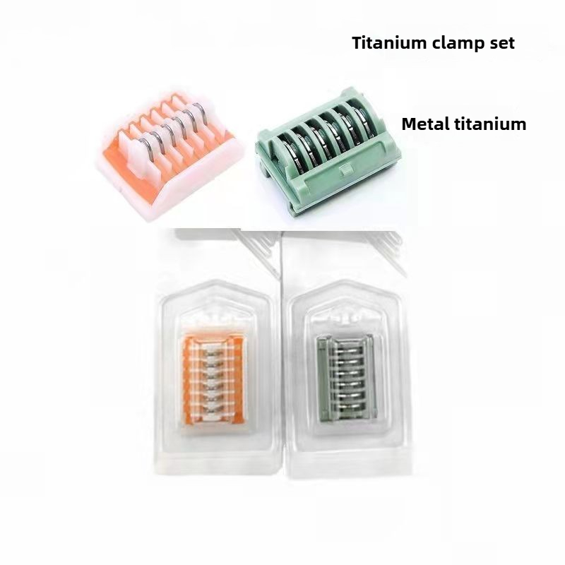 Titanium clamp L, No. 3 120 pieces, Titanium clamp M, No. 4 6 pieces, No. 3 60 pieces, No. 4 60 pieces, Titanium clamp S, No. 4 120 pieces, No. 2 120 pieces, No. 3 6 pieces, No. 5 120 pieces |