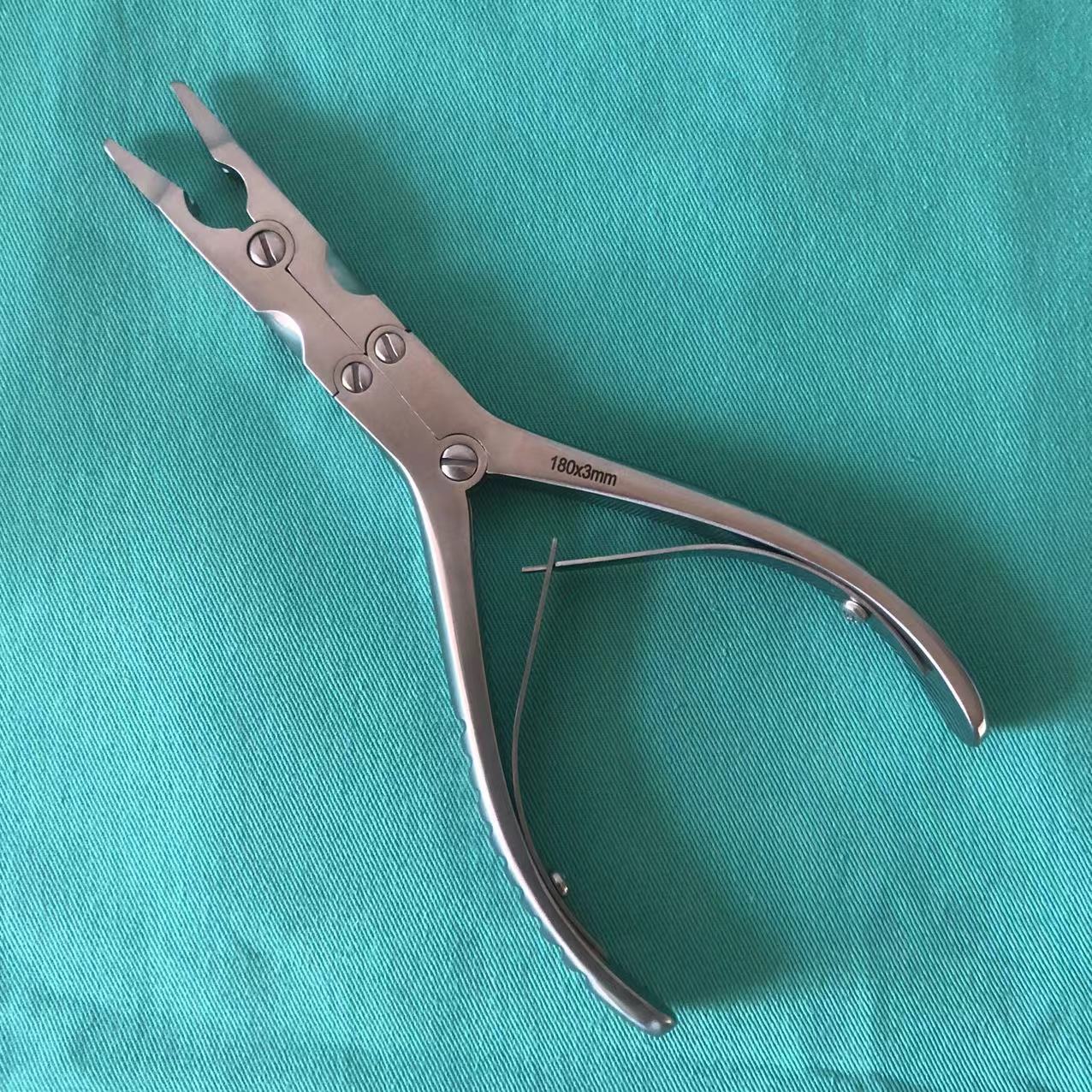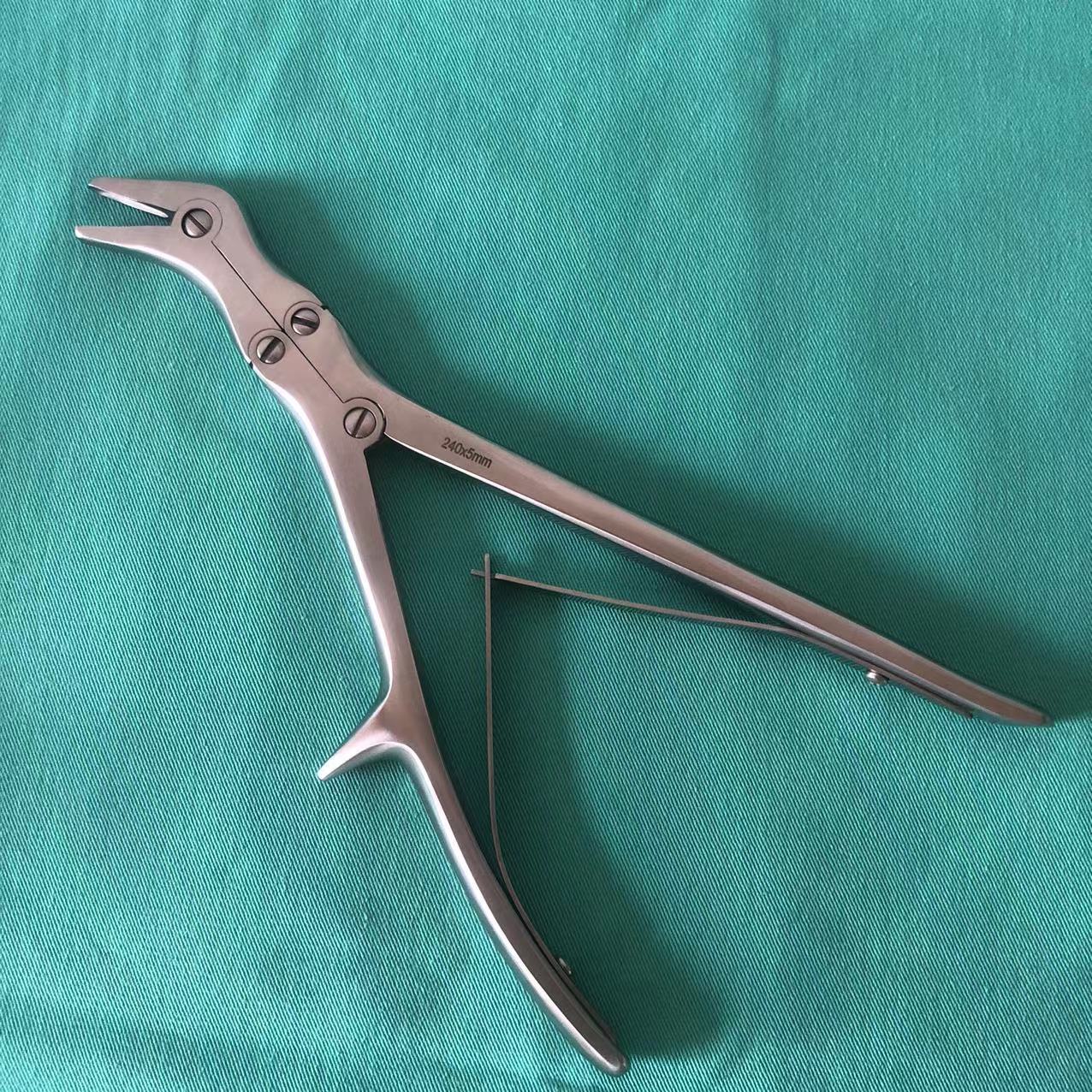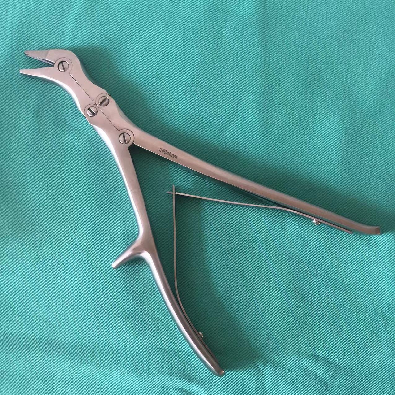 Core Category: This is a surgical instrument specifically designed for biting, trimming, and removing bone during orthopedic surgery.