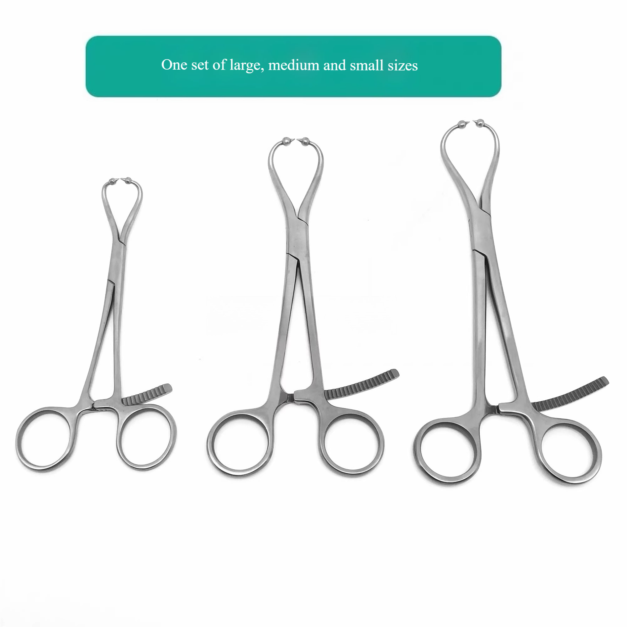 This is a professional veterinary reduction forceps set specifically designed for small animal orthopedic surgery. Its key feature is a unique combination of a ball-tip and pointed jaw design, engineered to provide secure grasping and precise alignment of bone fragments during procedures. The set includes three different sizes—160mm, 195mm, and 210mm—to accommodate the delicate operational requirements of various pet sizes and different surgical sites.