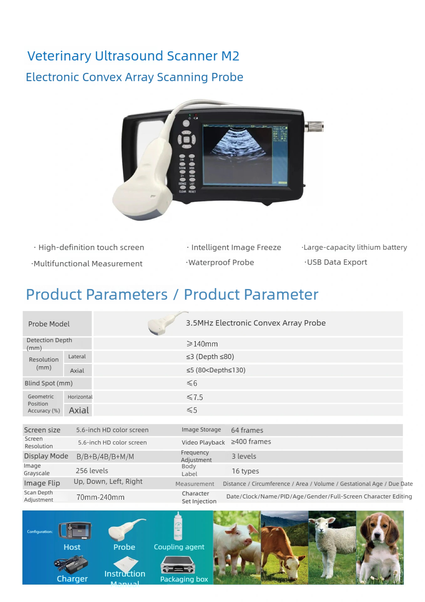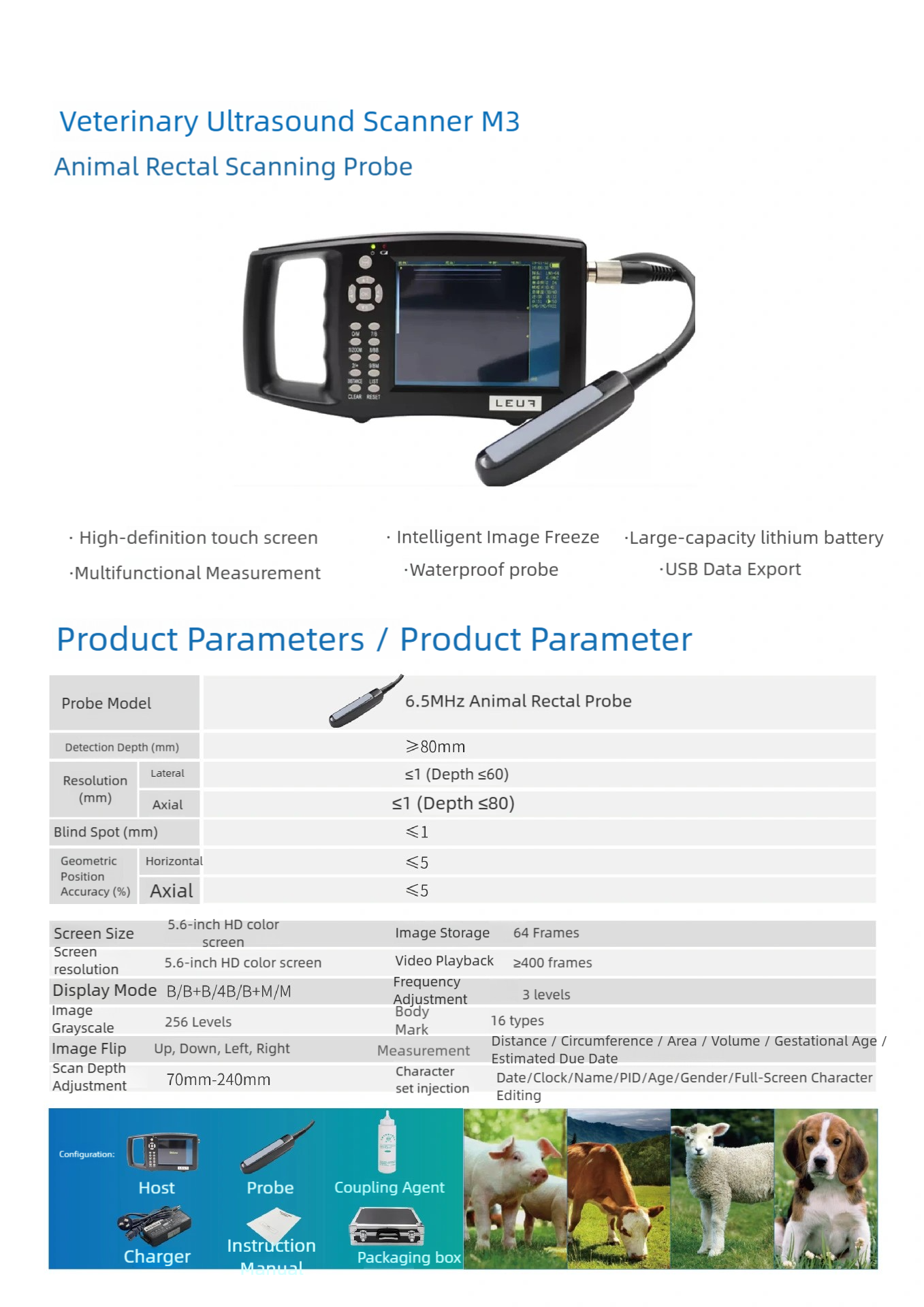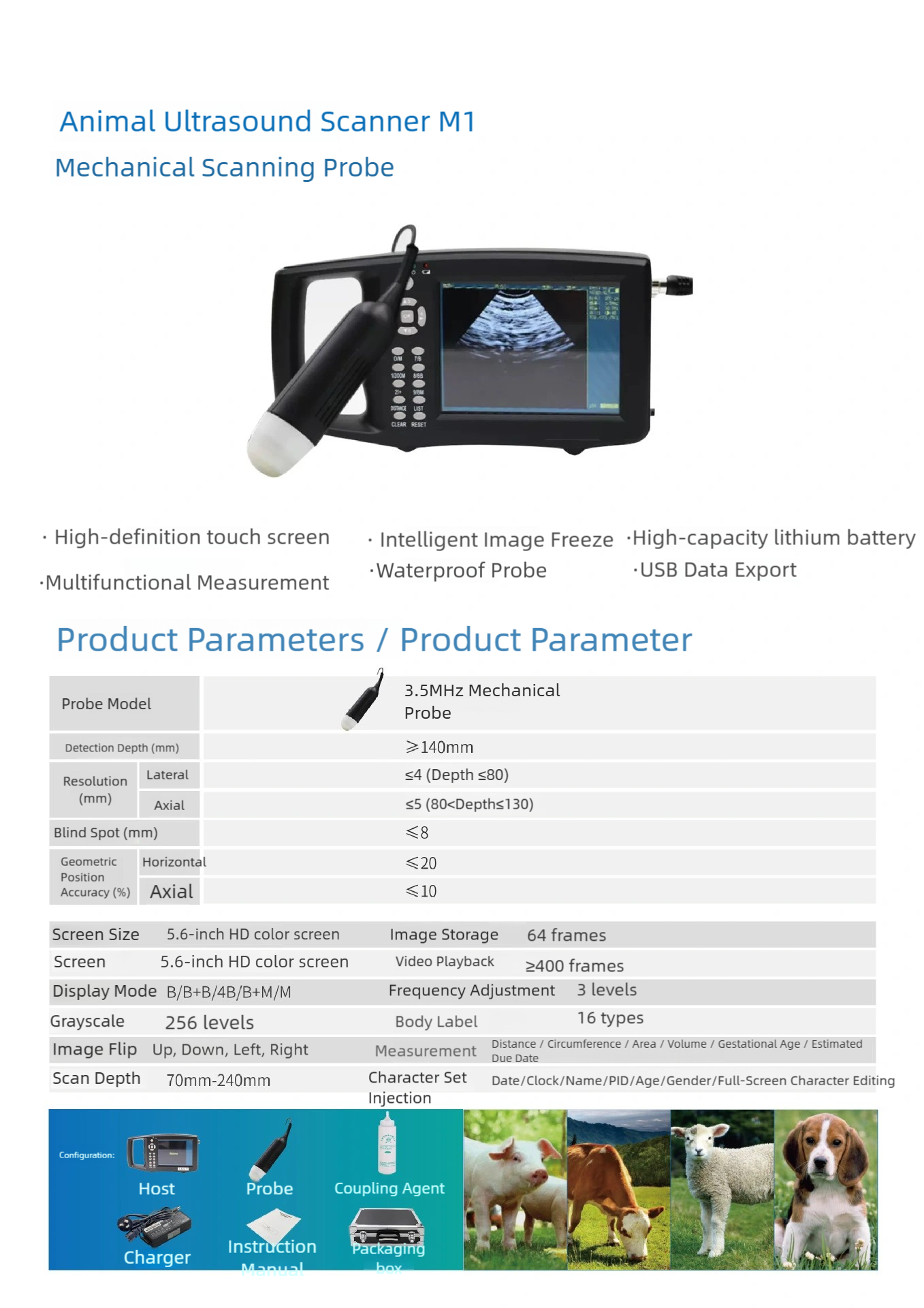 1. M1- 3.5MHz Mechanical probe: for Medium Species:Goats, sheep, large-breed dogs, Swine ,superior near-field imaging