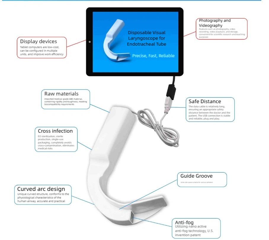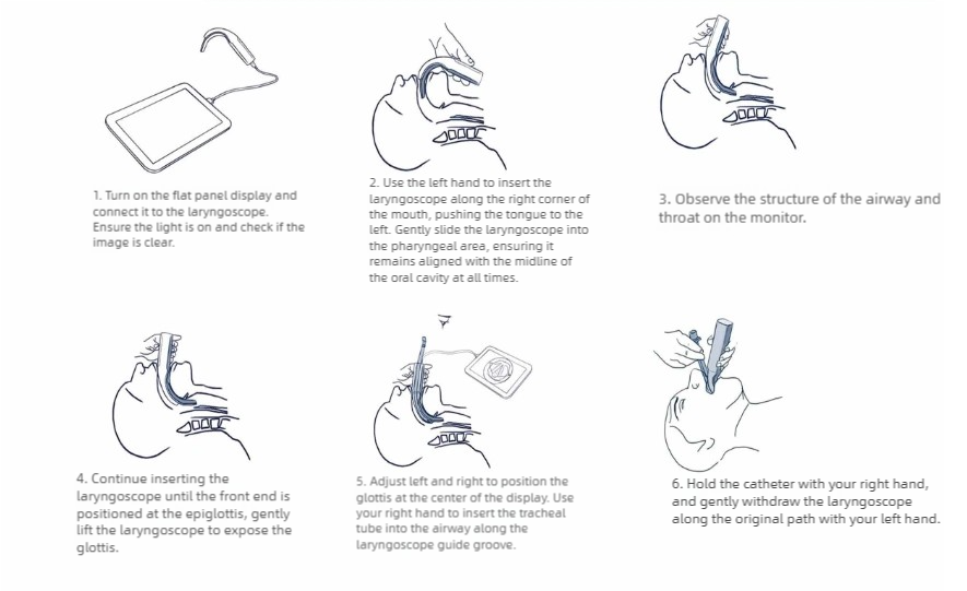 ✔ Vs traditional laryngoscopes: The installation of the laryngoscope is a simple operation. The unique curved oral axis/pharyngeal axis/laryngeal axis conforms to airway characteristics, requires no positional adjustments, and can be quickly and accurately inserted.